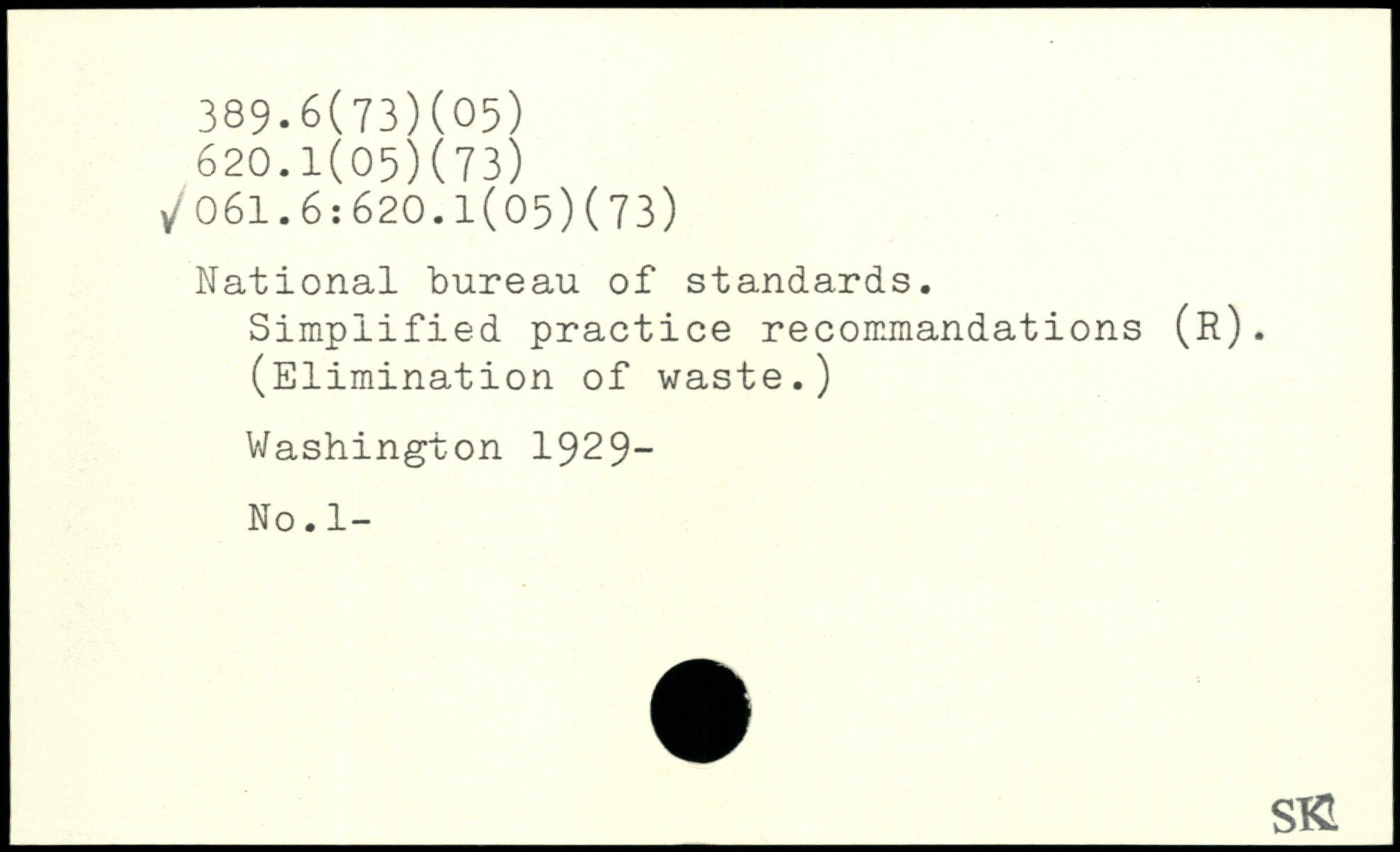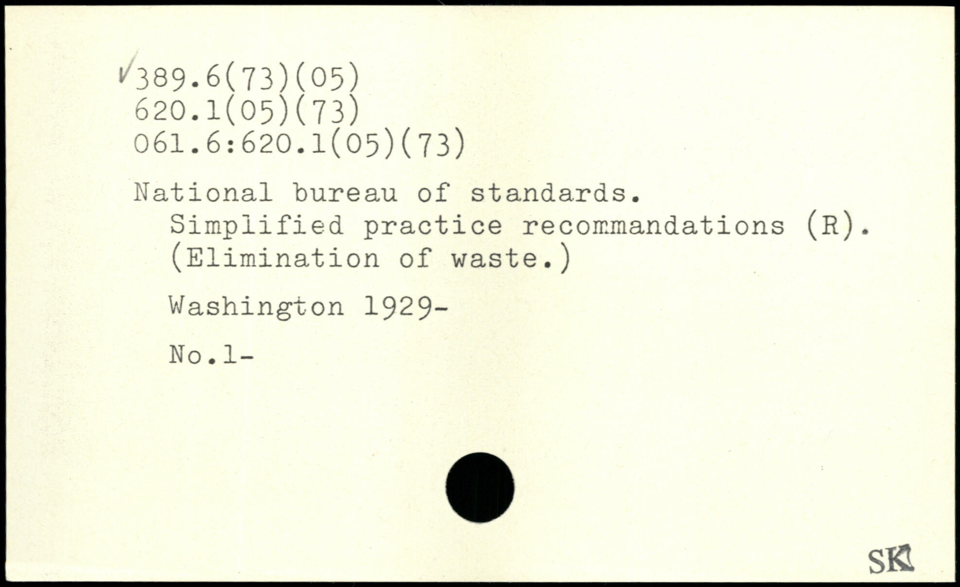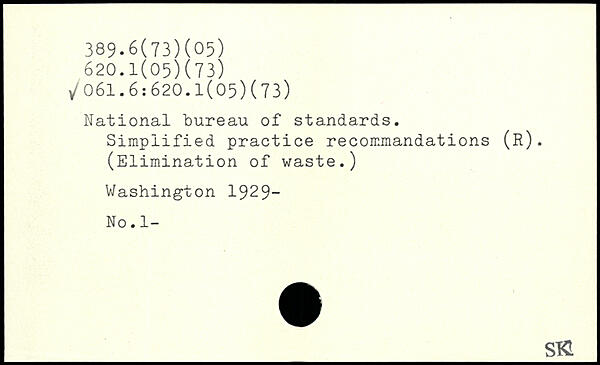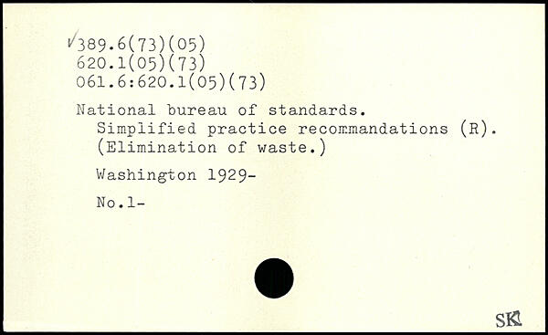 National bureau of standards. Simplified practice recommandations (R). (Elimination of waste.)