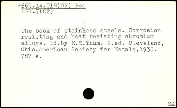 The hook of stainless steels. Corrosion resisting and heat resisting chromium alloys. Ed.by E.E.Thum.