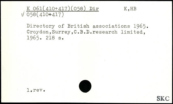 Directory of British associations 1965. Croydon,Surrey,C.B.D.re search limited, 1965.