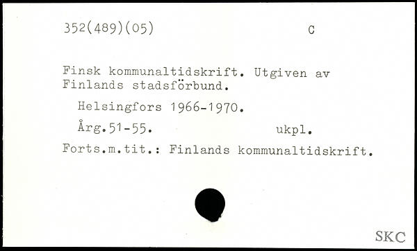 Finsk kommunaltidskrift. Utgiven av Finlands stadsförbund.