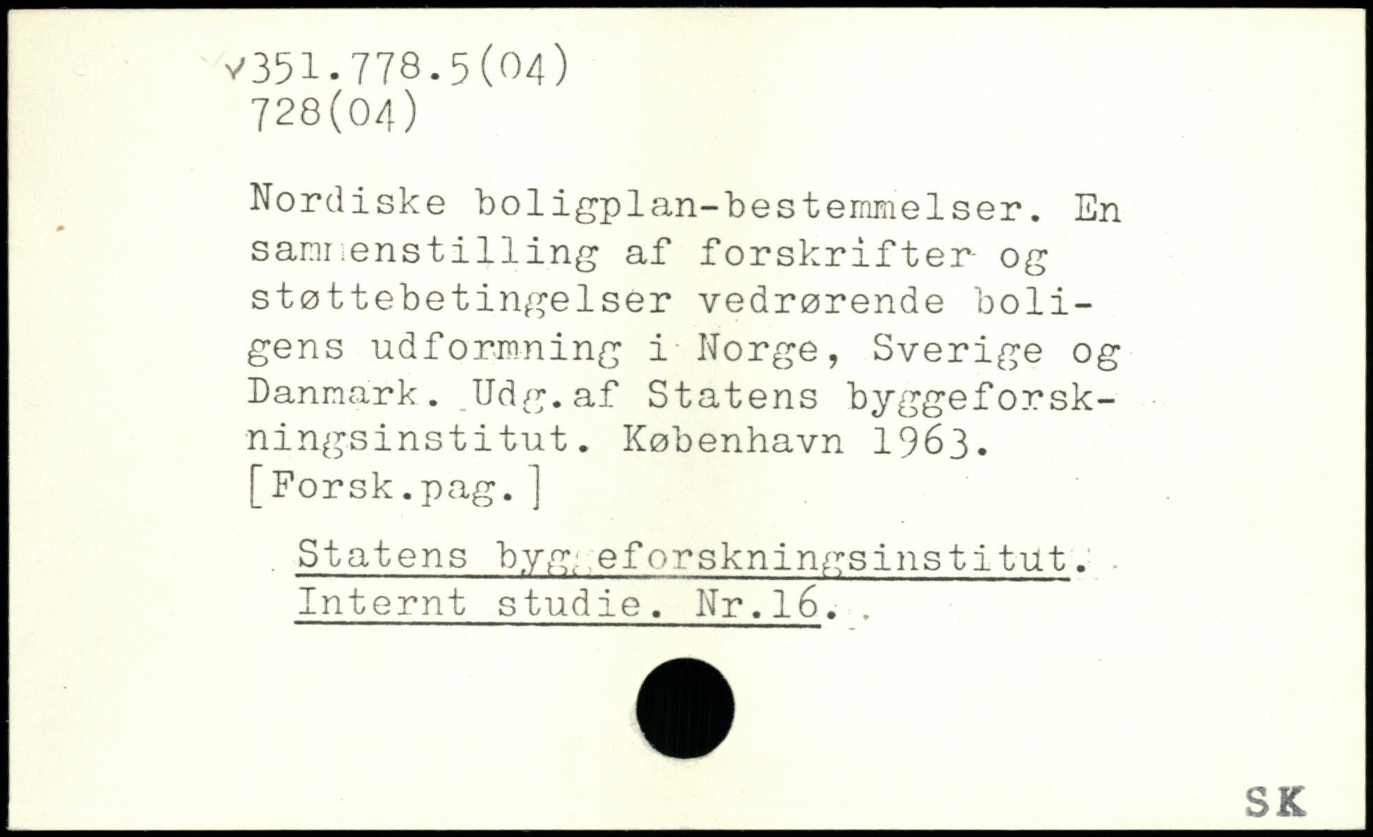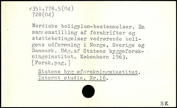 Nordiske boligplan-bestemmelser. En sami benst1111ng af forskrifter- og støttebetingelser vedrørende boligens udformning i Norge, Sverige og Danmark. Udg.af Statens byggeforskningsinstitut.