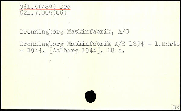 Dronningborg Maskinfabrik, A/S Dronningborg Maskinfabrik A/S 1894 - 1.Marts - 1944.