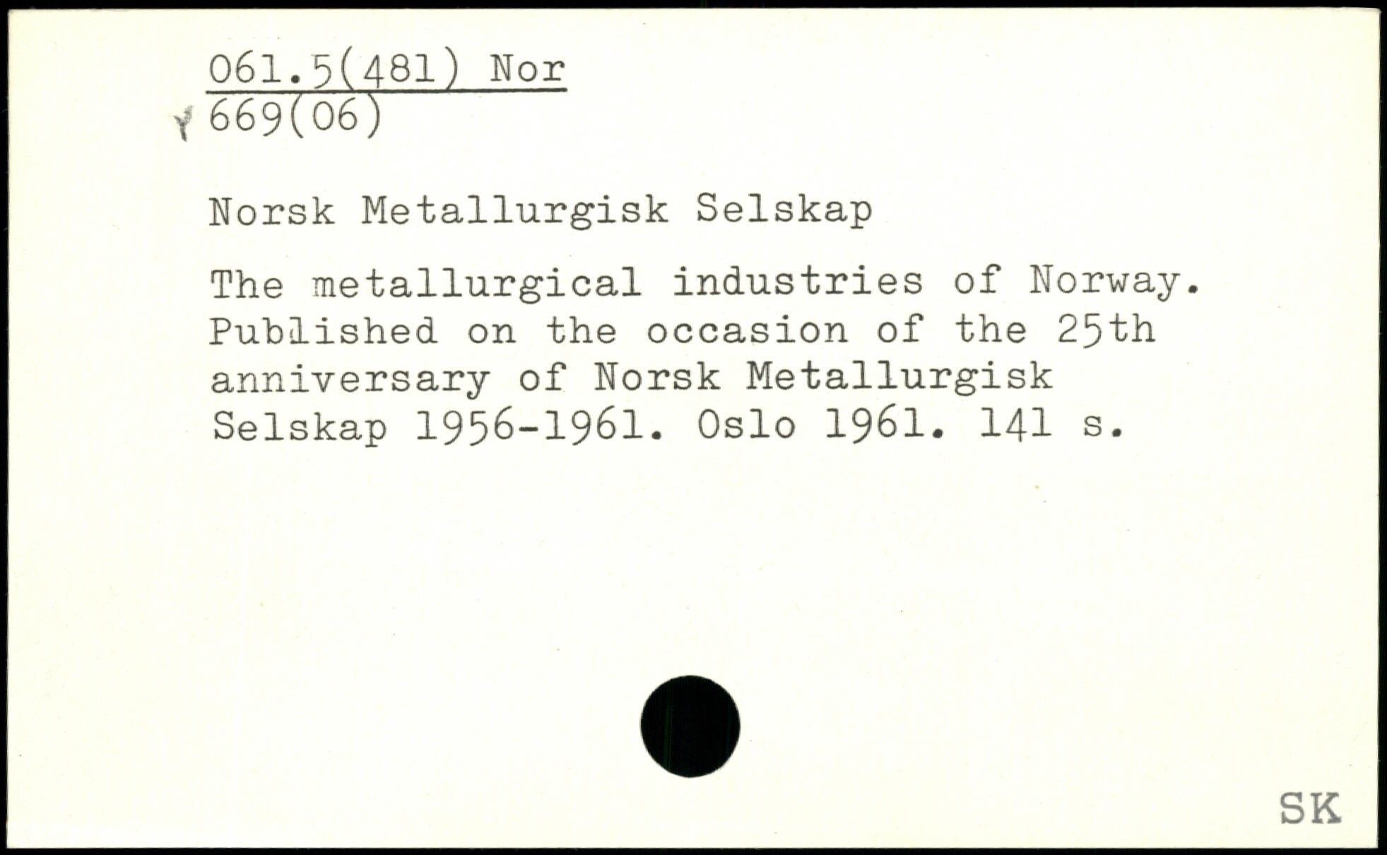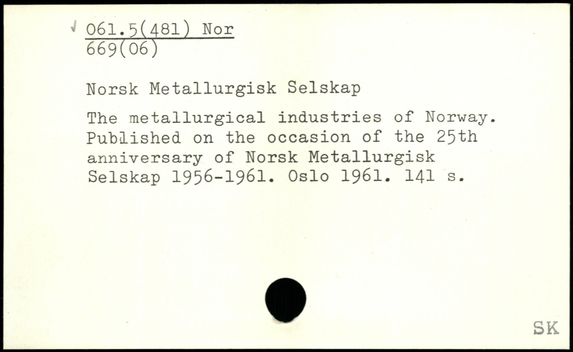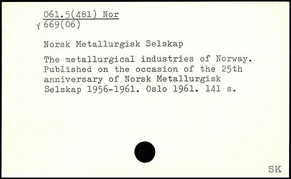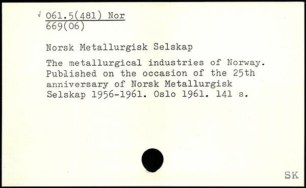 Norsk Metallurgisk Selskap The metallurgical industries of Norway. Published on the occasion of the 25th anniversary of Norsk Metallurgisk Selskap 1956-1961. Oslo 1961.