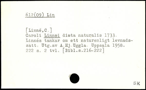 Caroli Linn sei diaeta naturalis 1733 Linnés tankar om ett naturenligt levnadssätt, Utg=av A:Hj;TJggla