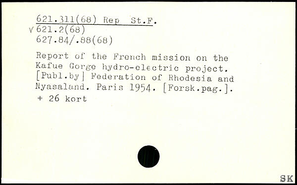 Report of the French mission on the Kafue Gorge hydro-electric project.