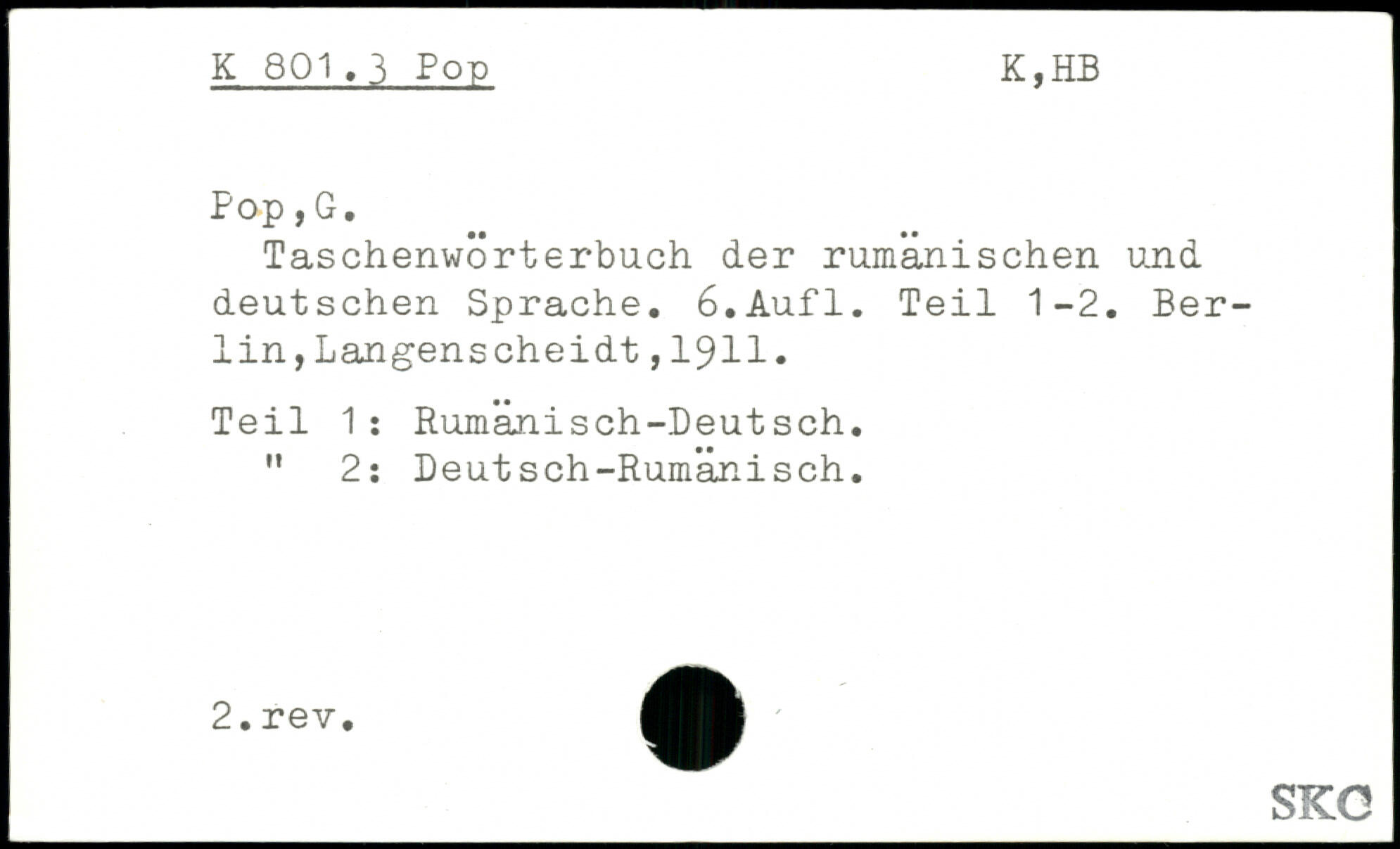 Taschenwörterbuch der rumänischen und deutschen Sprache. 6,Aufl. Teil 1-2.