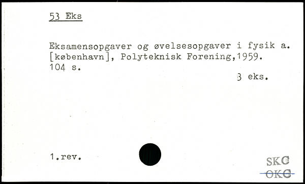 Eksamensopgaver og øvelsesopgaver i fysik a. [københavn], Polyteknisk Forening,1959