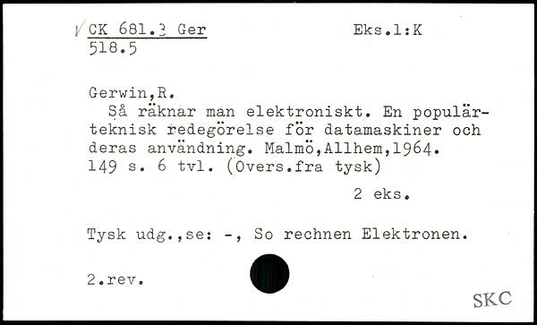 Så räknar man elektroniskt. En populärteknisk redegörelse för datamaskiner och deras användning.