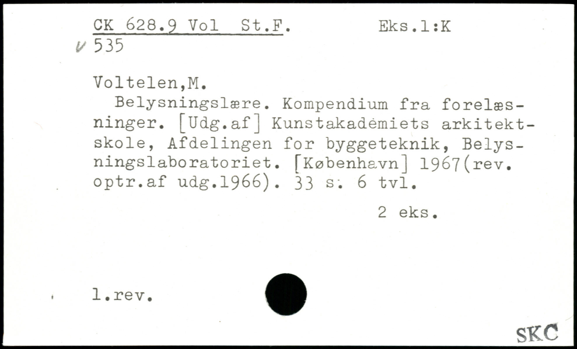 Belysningslære. Kompendium fra forelæsninger. [Udg.af] Kunstakademiets arkitektskole, Afdelingen for byggeteknik, Belysningslaboratoriet.