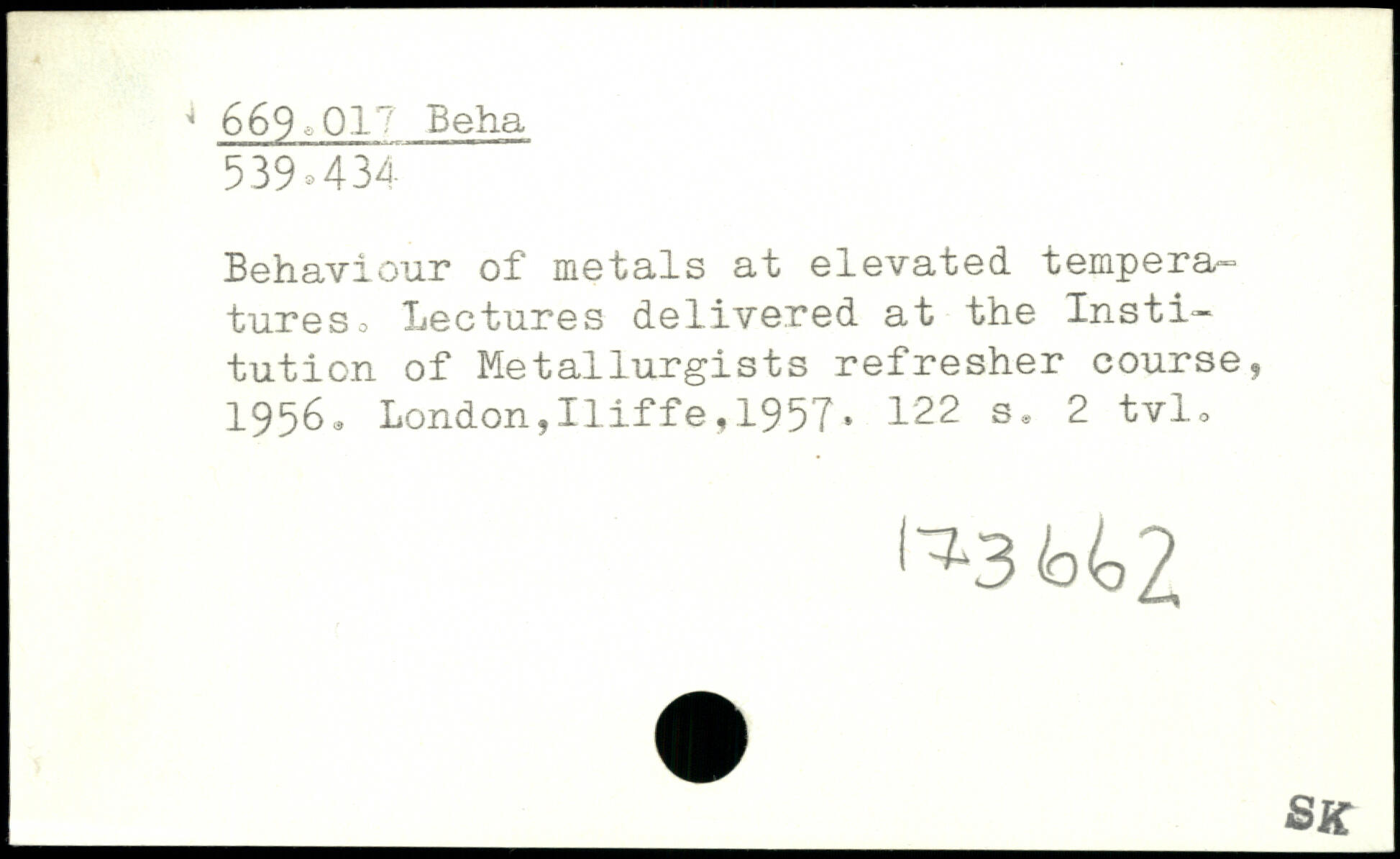 Behaviour of metals at elevated temperatures o Lectures delivered at the Institution of Metallurgists refresher course, 1956.