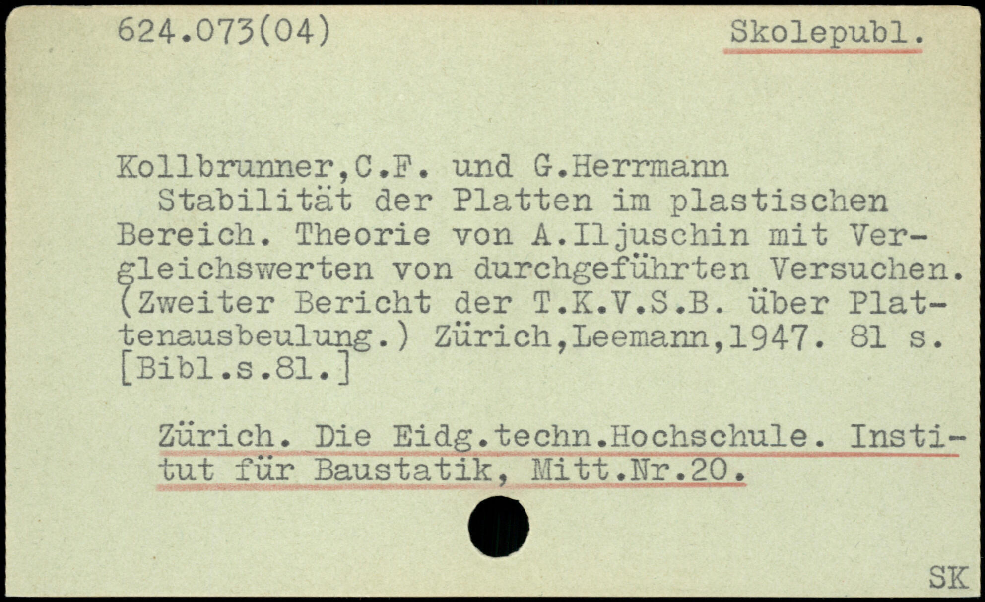 Stabilität der Platten im plastischen Bereich. Theorie von A.Iljuschin mit Vergleichswerten von durchgeführten Versuchen. (Zweiter Bericht der T.K.V.S.B. über Plattenausbeulung.)