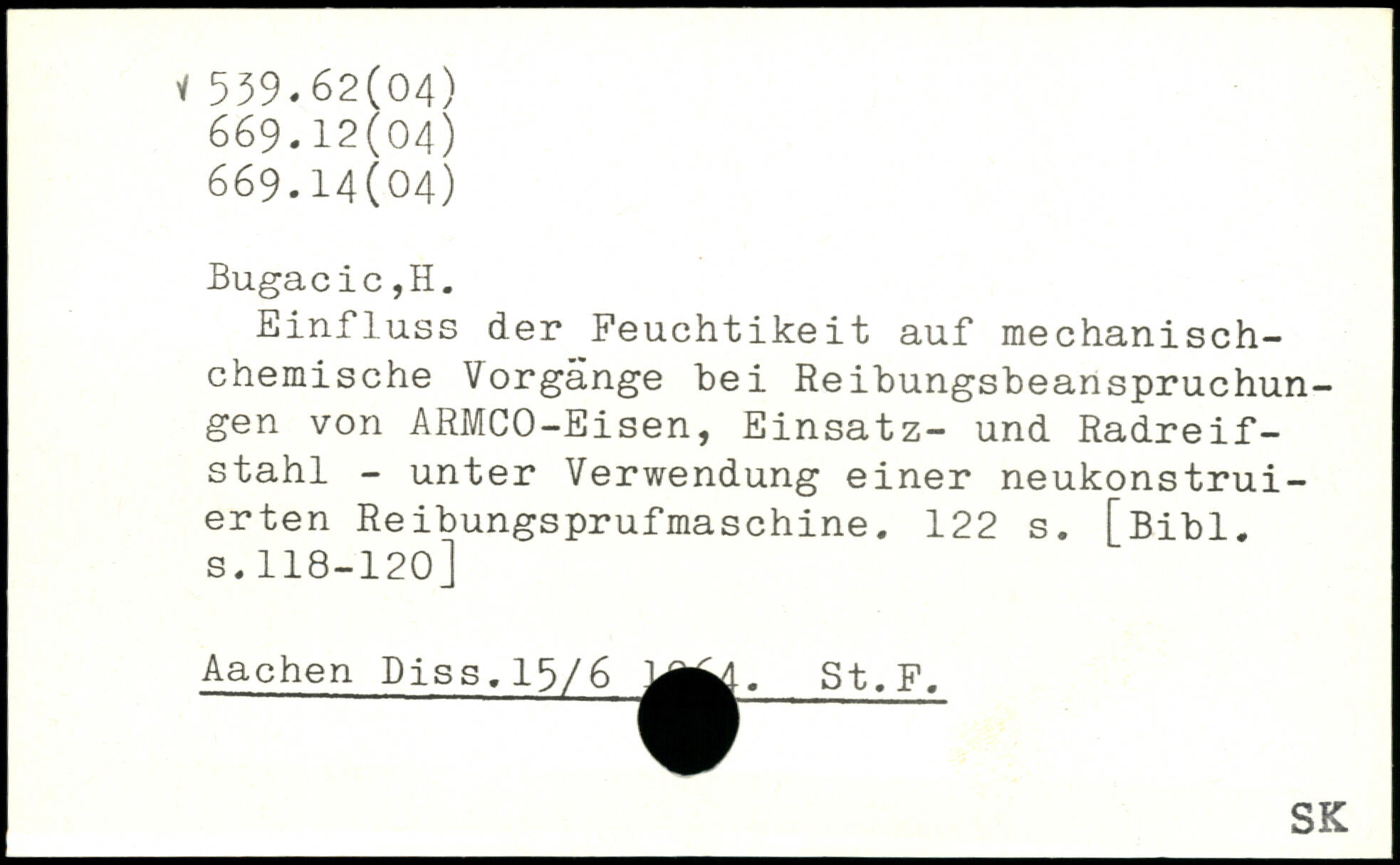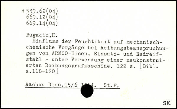 Einfluss der Feuchtikeit auf mechanischchemische Vorgänge bei Reibungsbeanspruchungen von ARMCO-Eisen, Einsatz- und Radreifstahl - unter Verwendung einer neukonstruierten Reibungsprufmaschine.