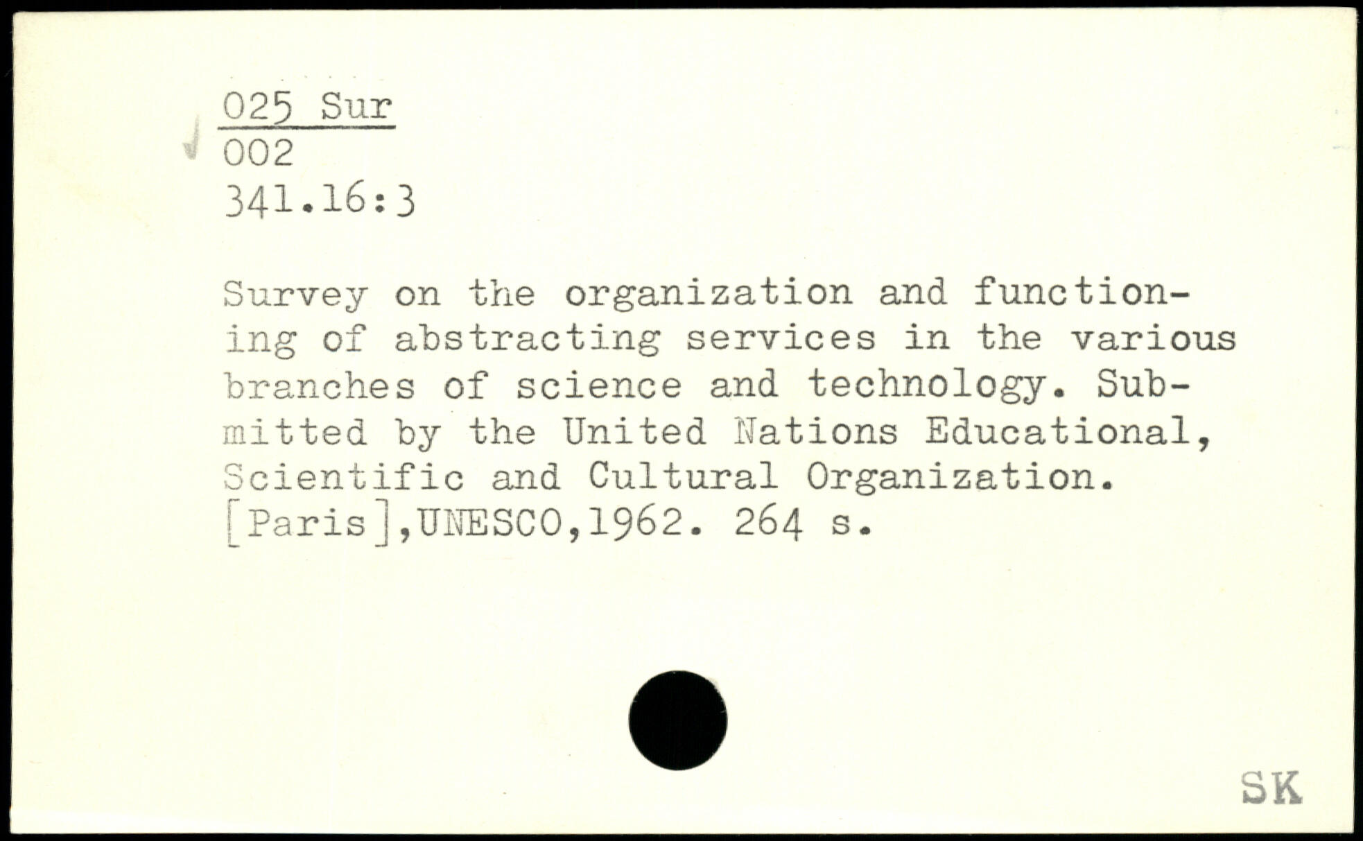 Survey on the organization and functioning of abstracting services in the various branches of science and technology. Submitted by the United Nations Educational, Scientific and Cultural Organization.