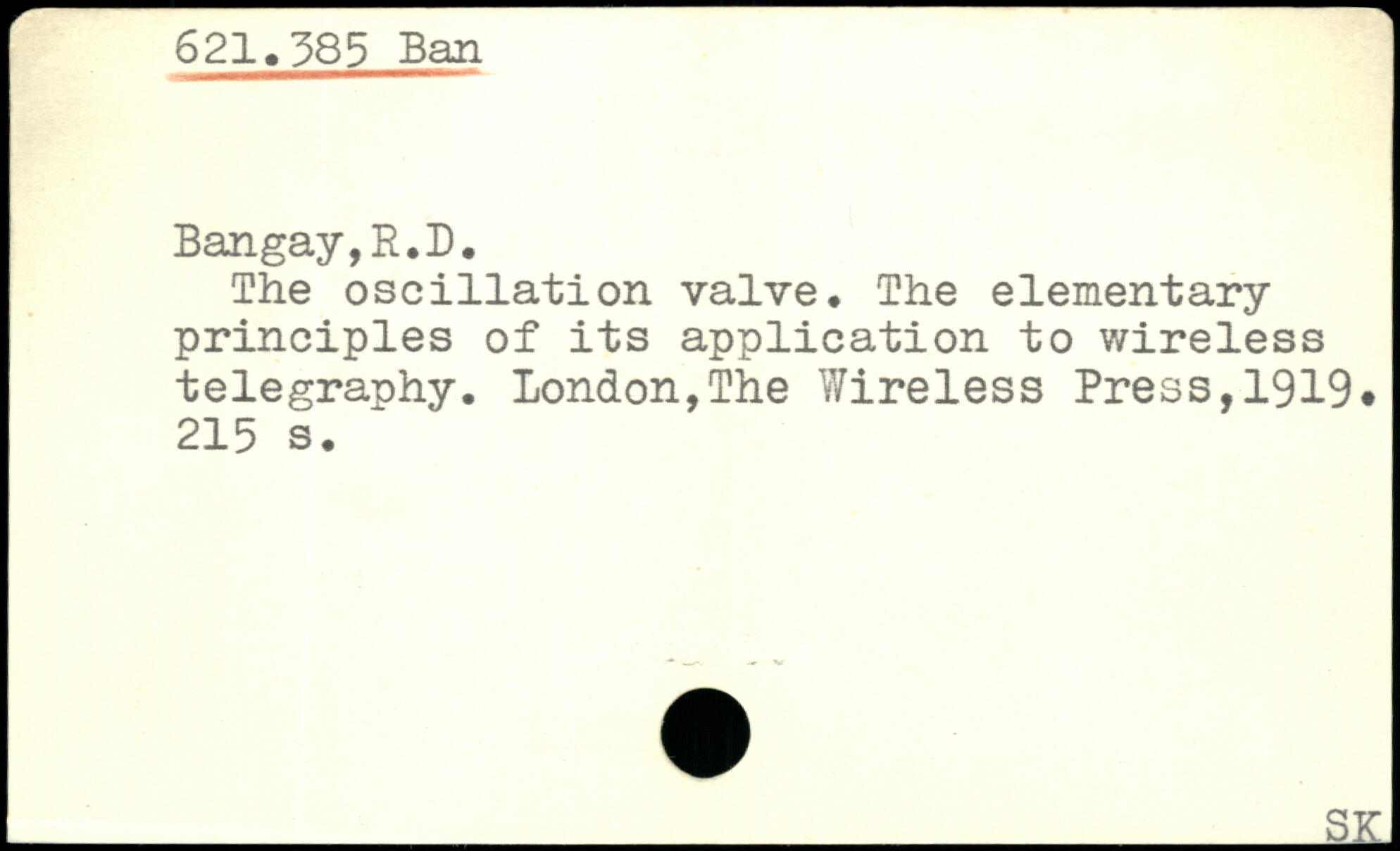 The oscillation valve. The elementary principles of its application to v/ireless telegraphy.