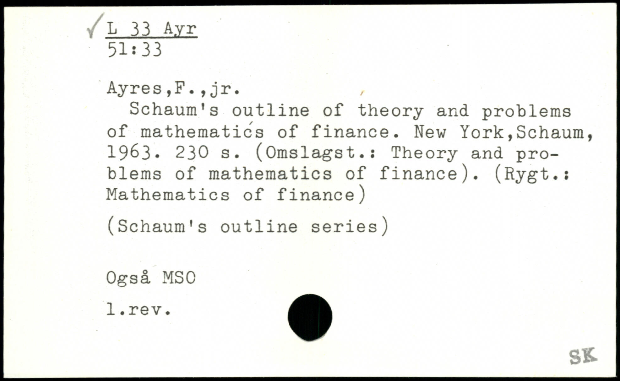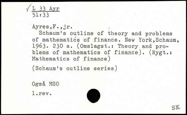 Ayres,F., jr. Schaum's outline of theory and problems of mathematics of finance. New York,Schaum, 19é3.