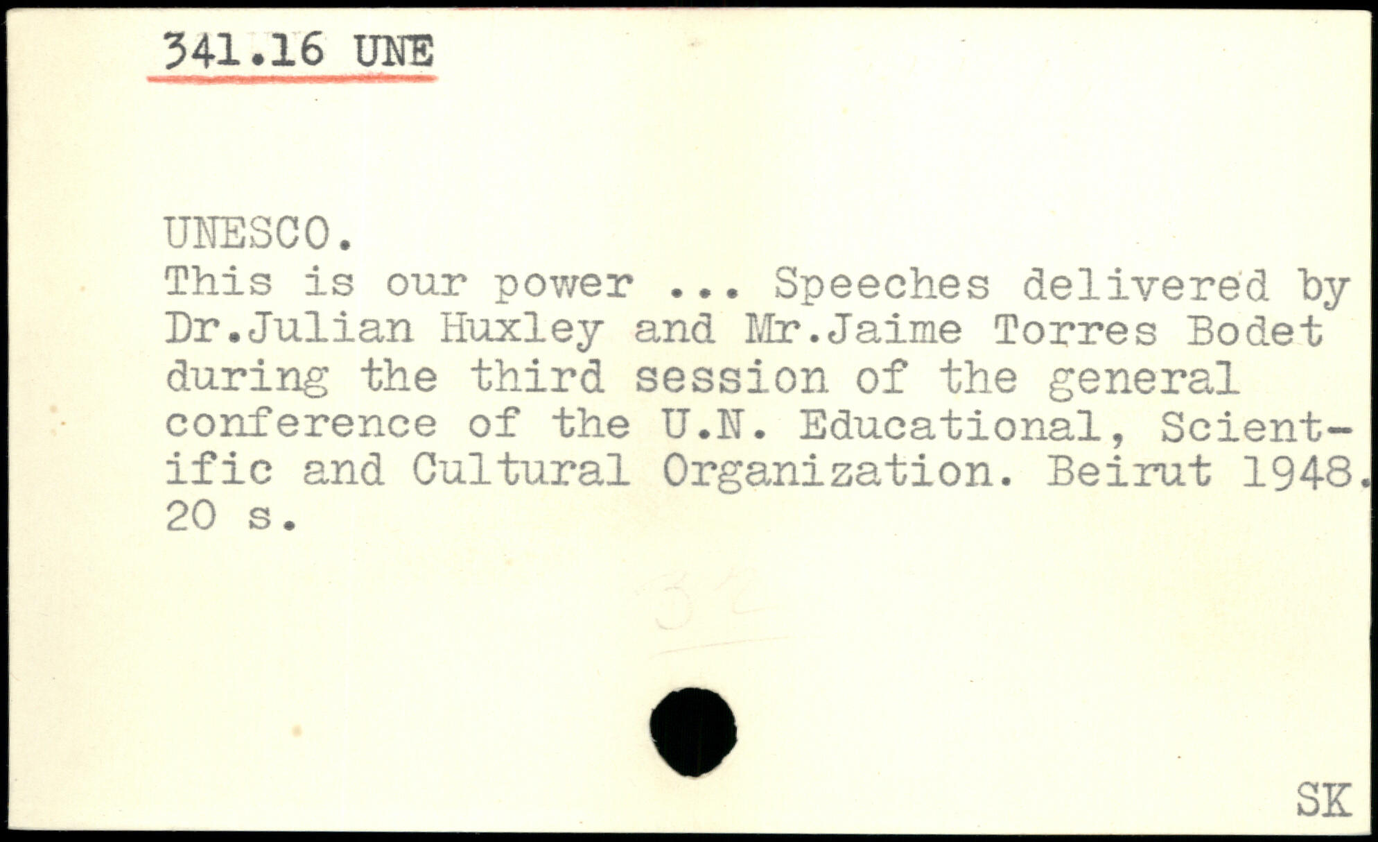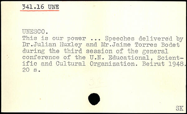 This is our power ... Speeches delivered by Ur.Julian Huxley and Mr.Jaime Torres Bodet during the third session of the general conference of the U.N. Educational, Scientific and Cultural Organization. Beirut 1948.