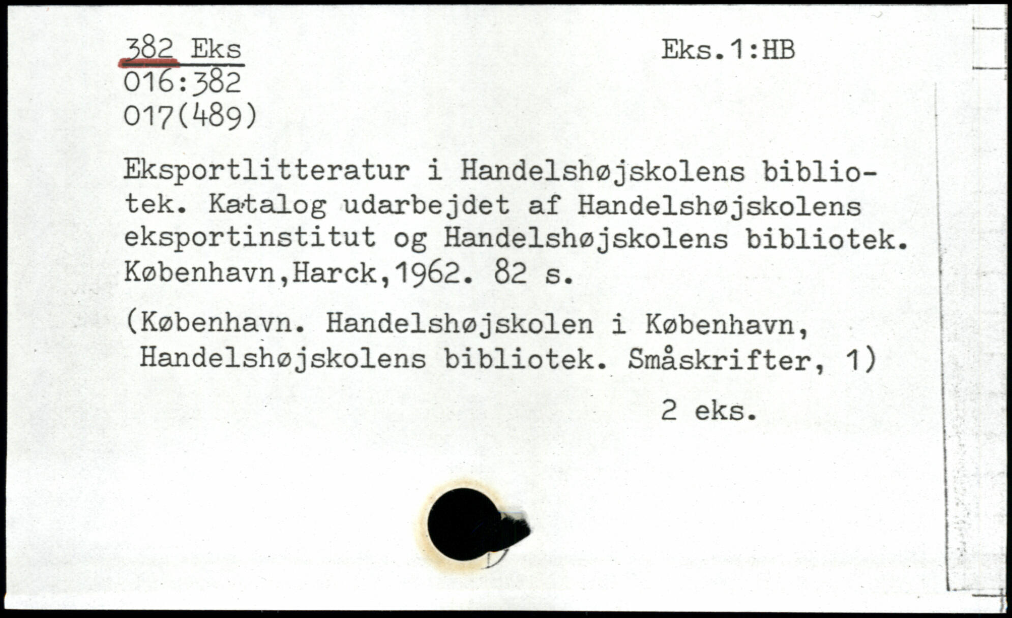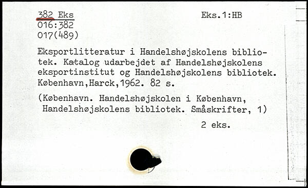 Eksportlitteratur i Handelshøjskolens bibliotek. Katalog udarbejdet af Handelshøjskolens eksportinstitut og Handelshøjskolens bibliotek.