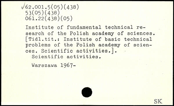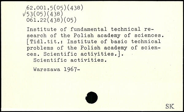 Institute of fundamental technical research of the Polish academy of sciences. [Tidl.tit.: Institute of basic technical problems of the Polish academy of sciences. Scientific activities.]. Scientific activities.