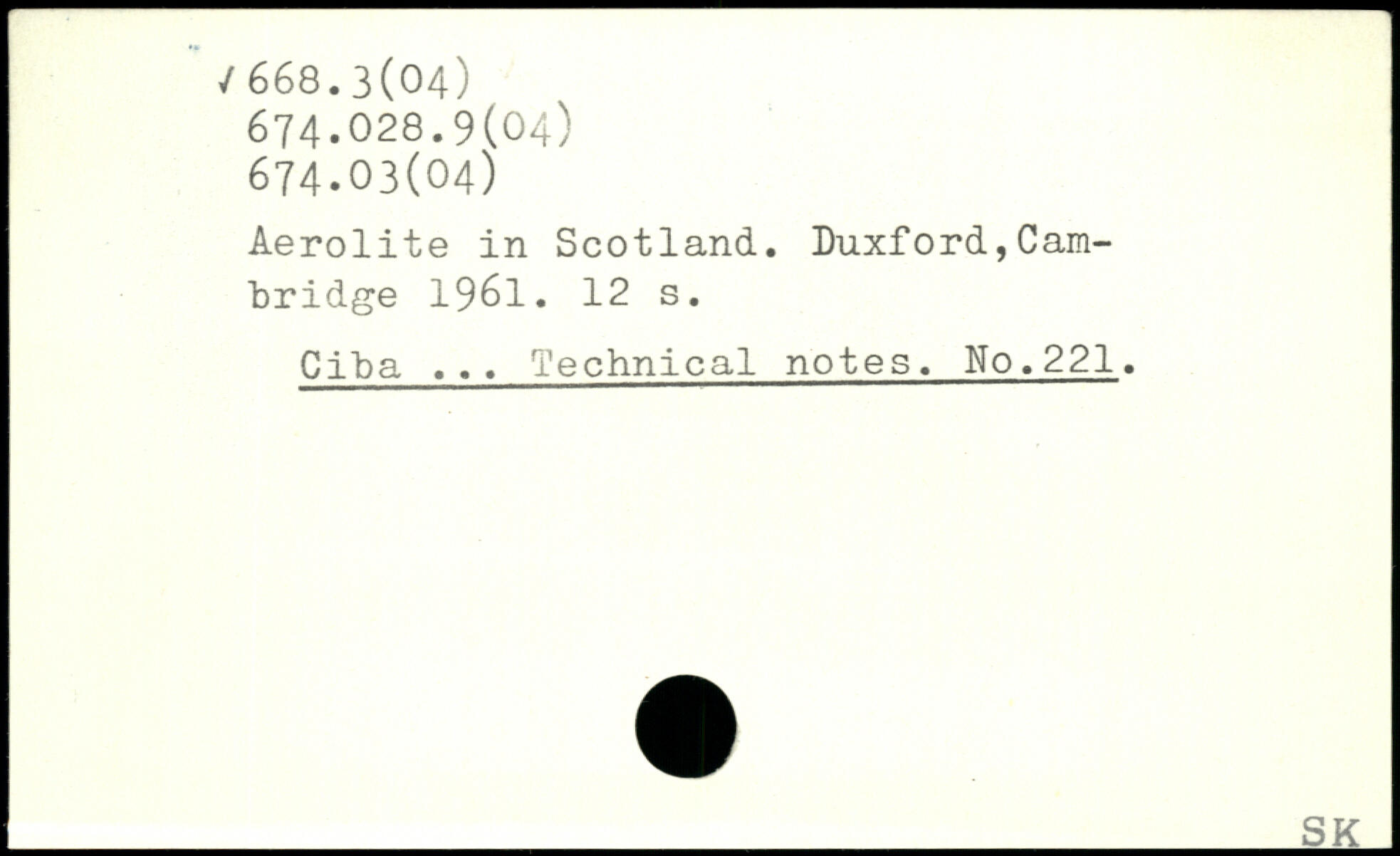 Aerolite in Scotland. Duxford