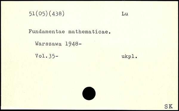 Fundamentae mathematicae.