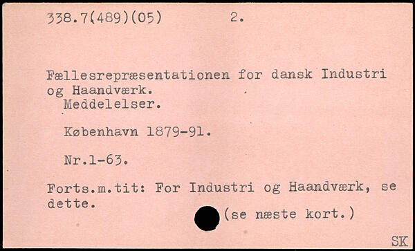 Pællesrepræsentationen for dansk Industri og Haandværk. Meddelelser.