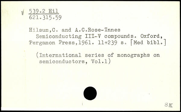 Hilsum,Co and A. C.Rose-Tnnes Semiconducting II1-V compounds.