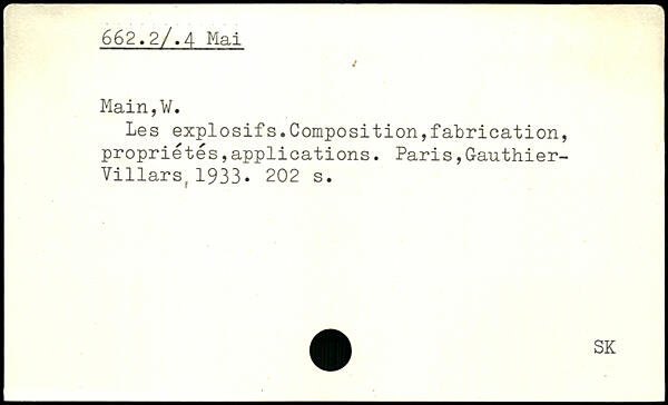 Les explosifs.Composition,fabrication, propriétés,applications. Paris,Gauthier-Villa^ 1933.