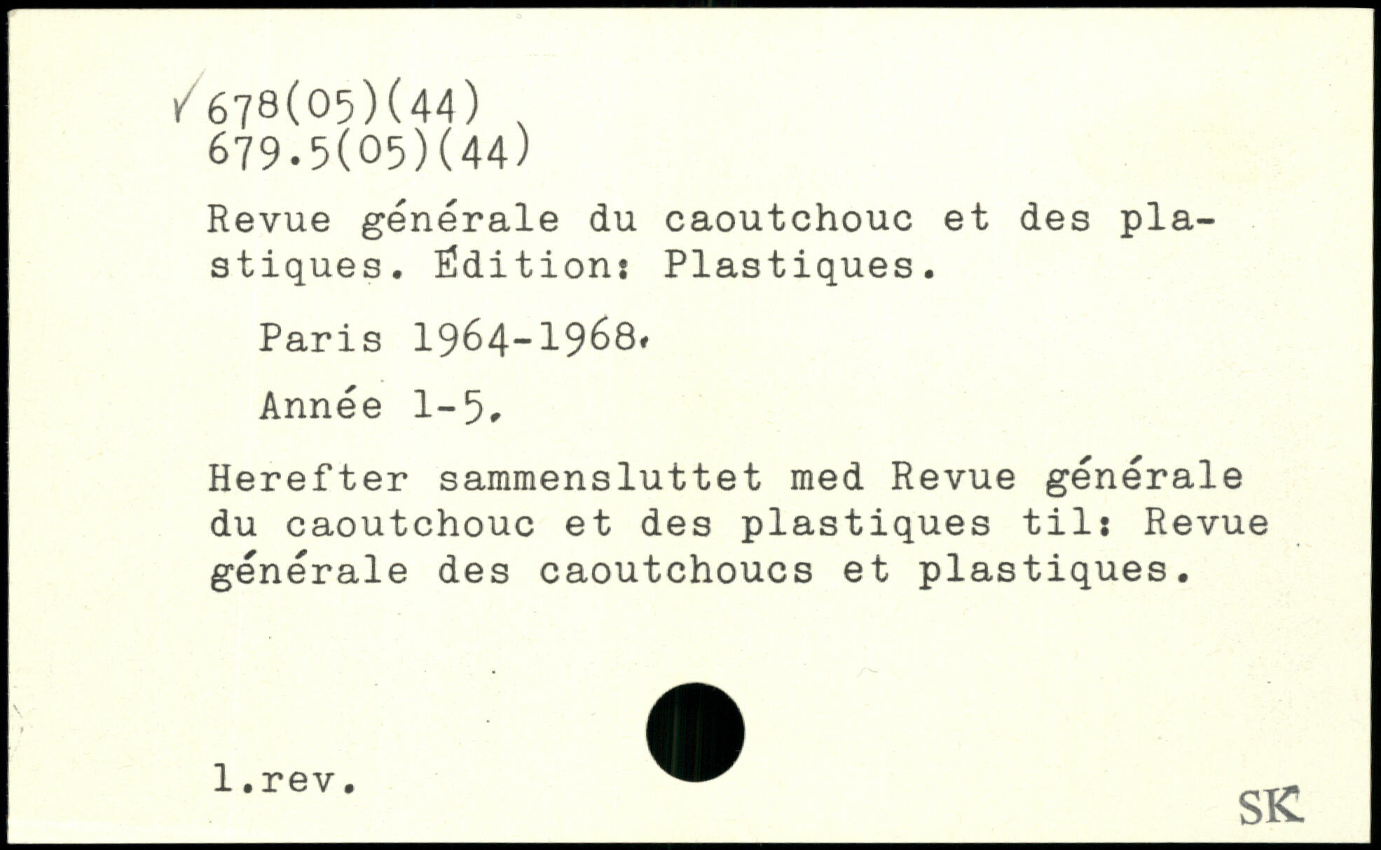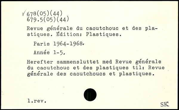 Revue générale du caoutchouc et des plastiques. Édition: Plastiques.