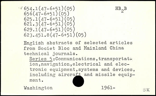 English abstracts of selected articles from Societ Bloc and Mainland China technical journals. Series 5:Communications,transportation,navigation,electrical and electronic equipment,systems and devices, including aircr^y: and missile equipment.