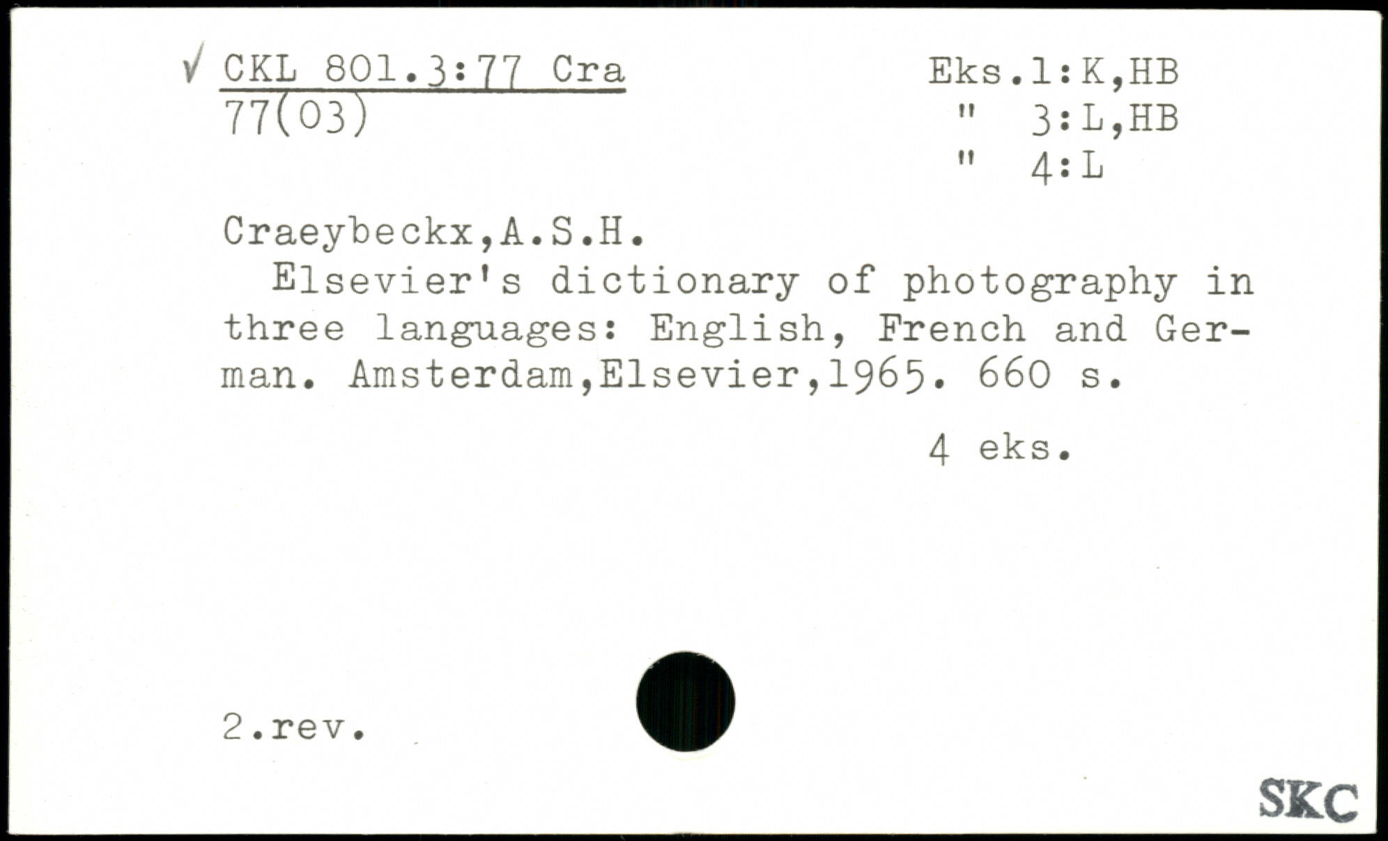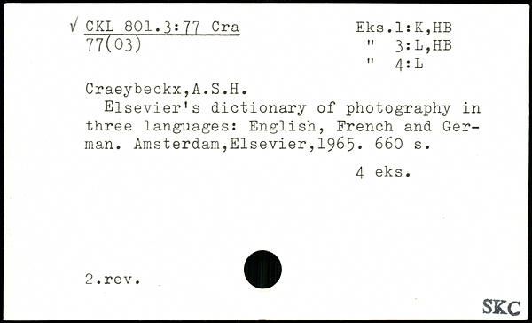 Elsevier's dictionary of photography in three languages: English, French and German.