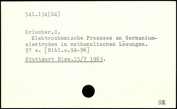 Elektrochemische Prozesse an Germaniumelektroden in methanolischen Losungen.