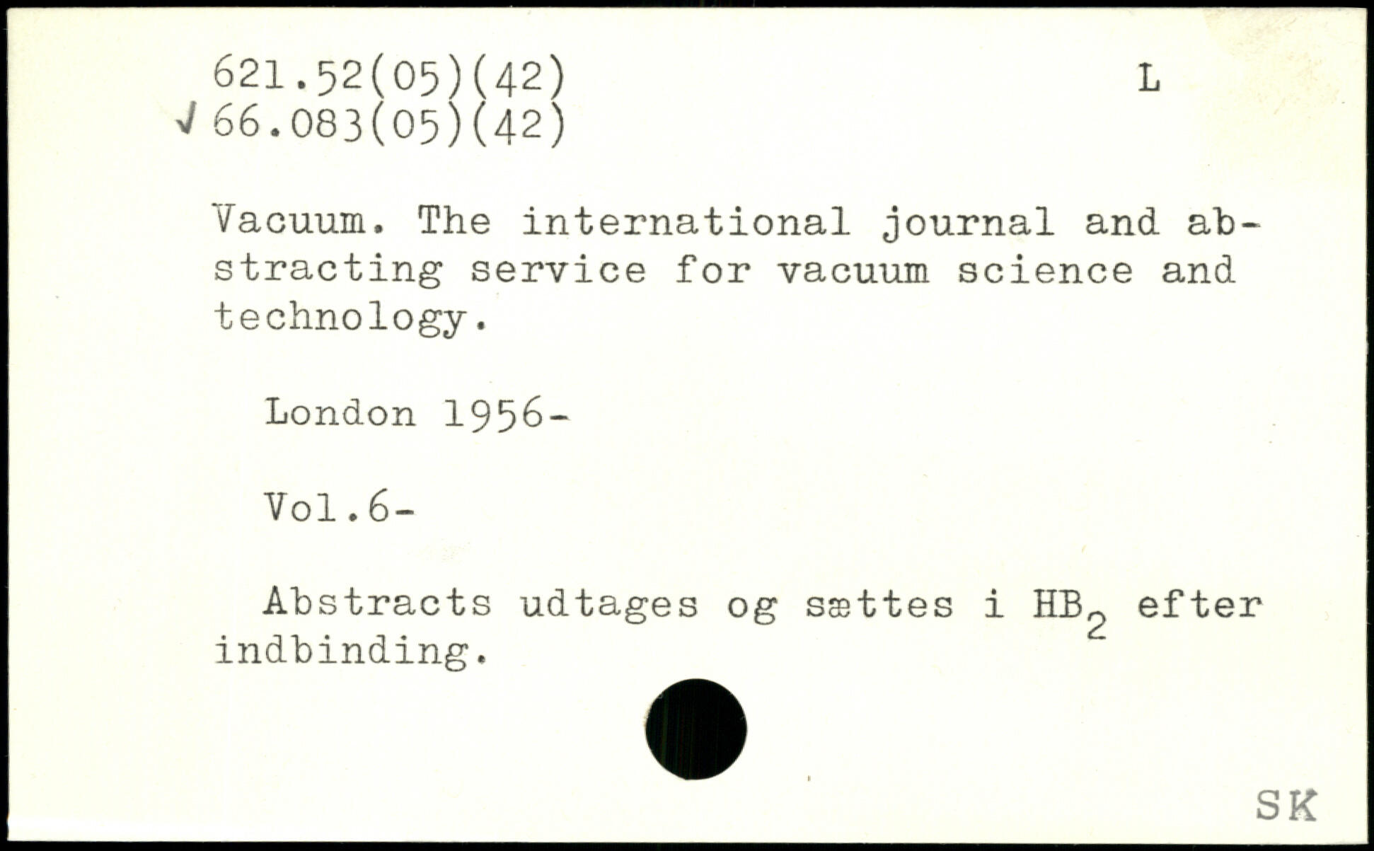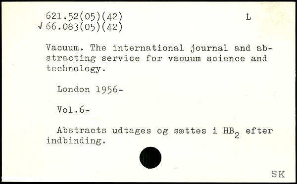 Vacuum. The international journal and abstracting service for vacuum science and technology.