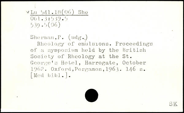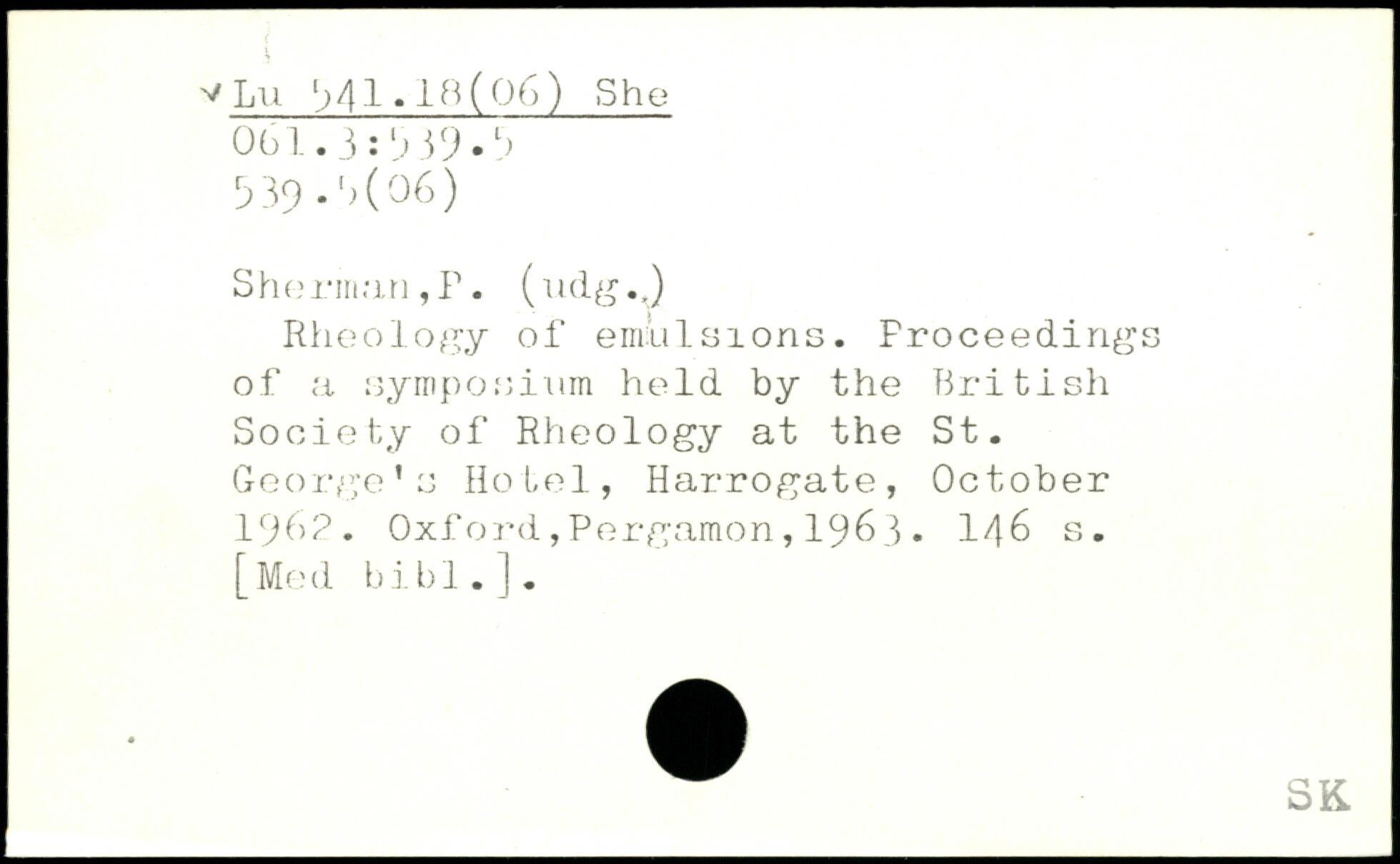 Sherman ,F. (udg.,) Rheology of emulsions. Proceedings of a symposium held by the British Society of Rheology at the St. George's Hotel, Harrogate, October 19b?.