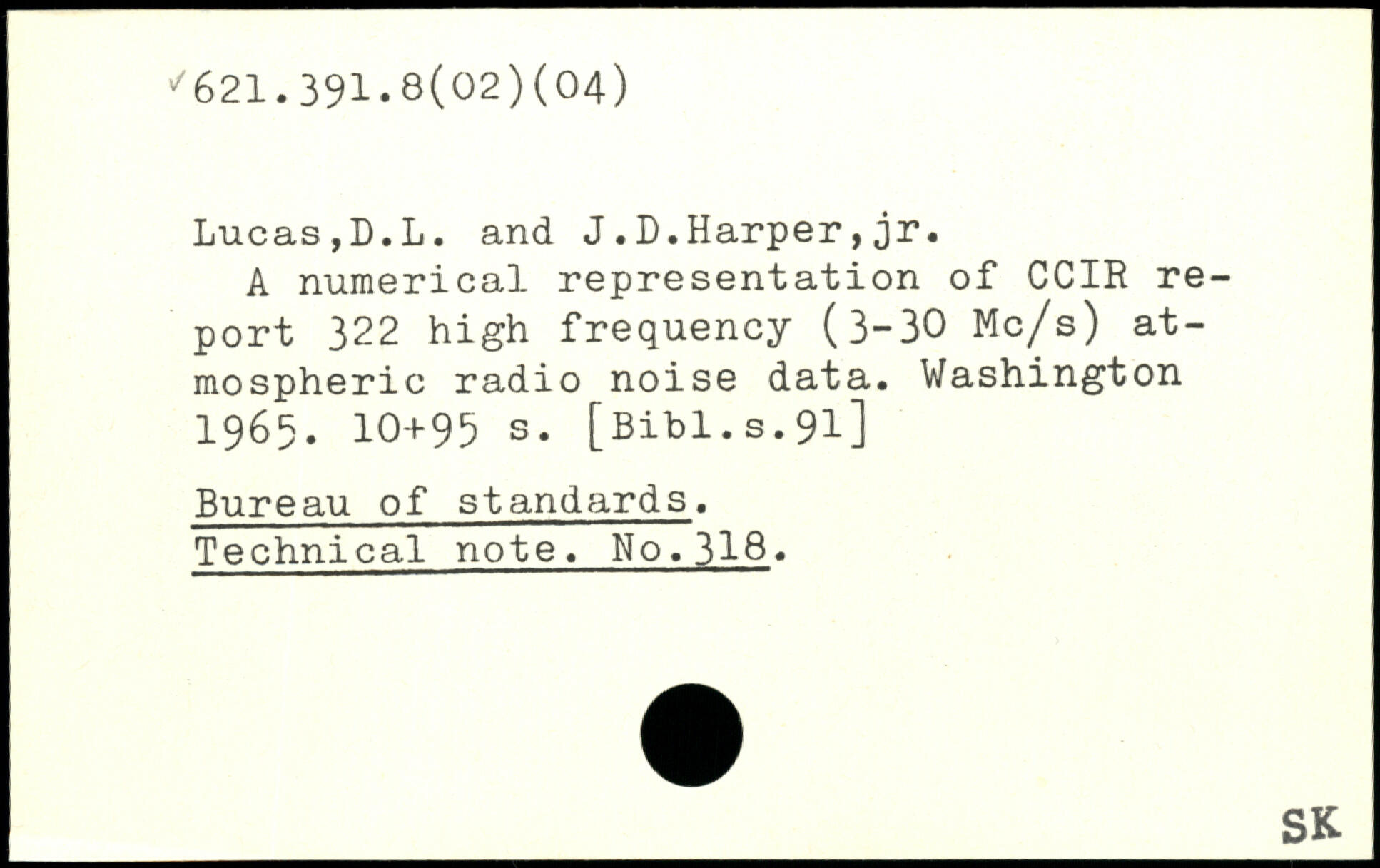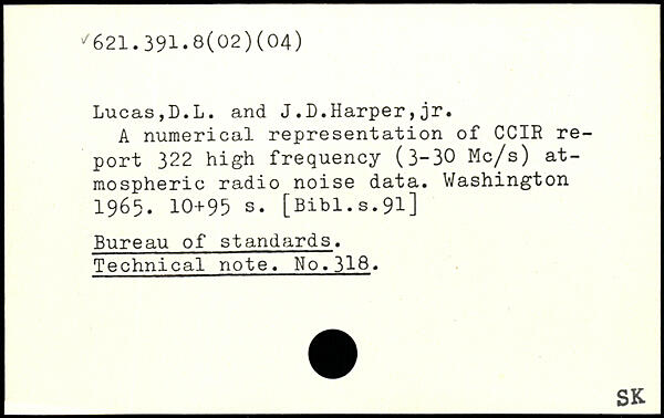 A numerical representation of CCIR report 322 high frequency (3-30 Mc/s) atmospheric radio noise data.