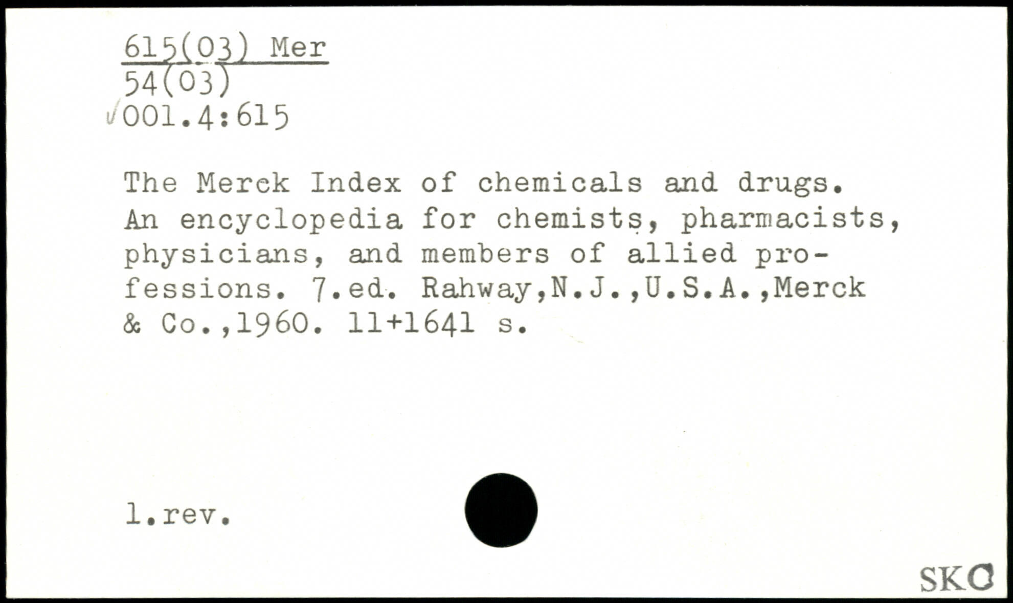The Merck Index of chemicals and drugs. An encyclopedia for chemists, pharmacists, physicians, and members of allied professions.