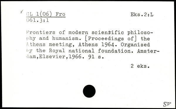 Frontiers of modern scientific philosophy and humanism. [Proceedings ofj the Athens meeting, Athens 1964. Organised i-y the Royal national foundation.