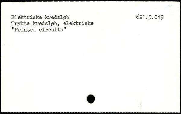 Elektriske kredsløb 621.3.049 Trykte kredsløb, elektriske "Printed circuits"