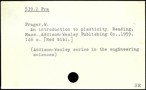 An introduction to plasticity, Reading, Mass,9Addison~Wesley Publishing Co,,1959=