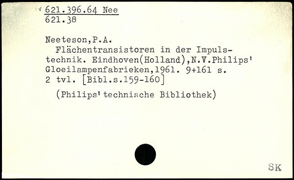 Flächentransistoren in der Impulstechnik. Eindhoven(Holland),N.V.Philips1 Gloeilampenfahrieken,1961.