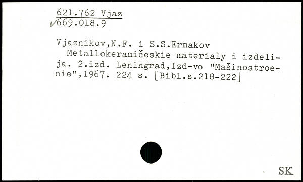 Me tall oke rami ce skie materialy i izdeü-ja. 2.izd. Leningrad,Izd-vo "Masinostroe-nie",1967.