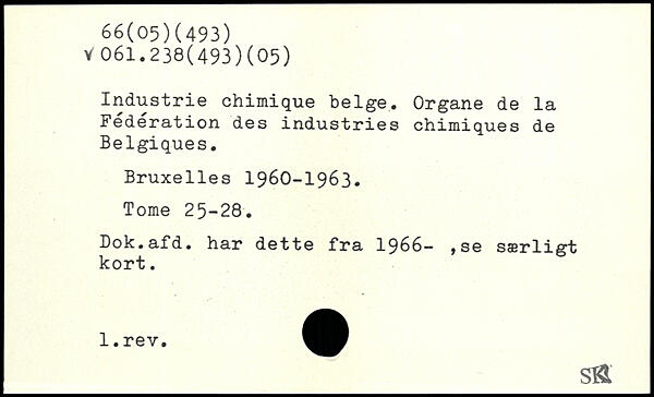 Industrie chimique belge. Organe de la Fédération des industries chimiques de Belgiques.