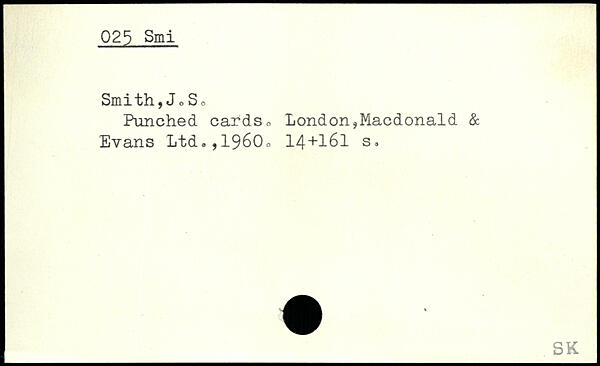 Punched cardso London,Macdonald & Evans Ltd,,1960o