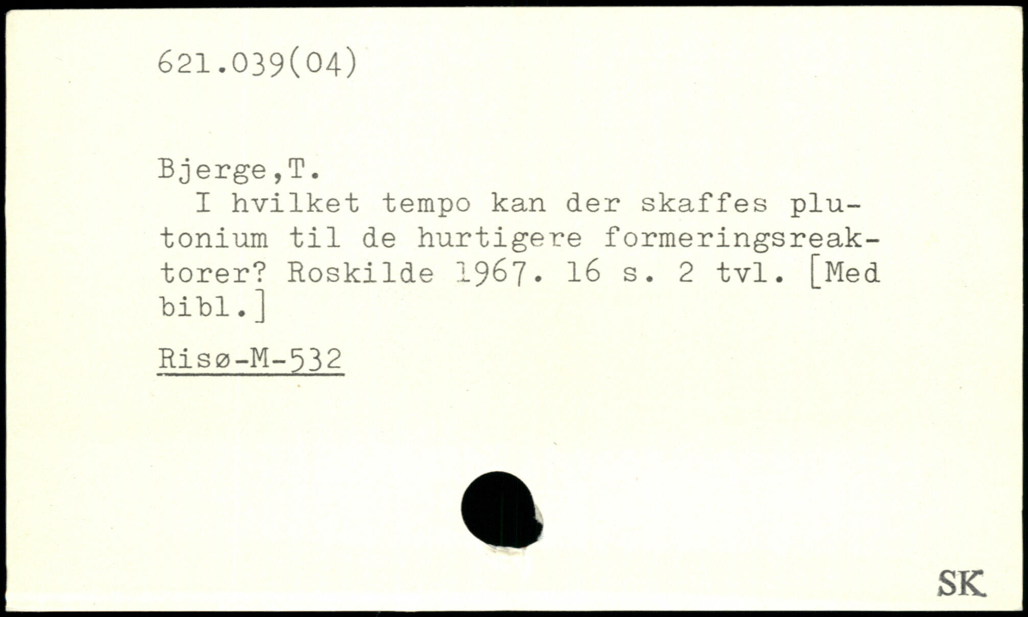 I hvilket tempo kan der skaffes plutonium til de hurtigere formeringsreaktorer? Roskilde 19^7