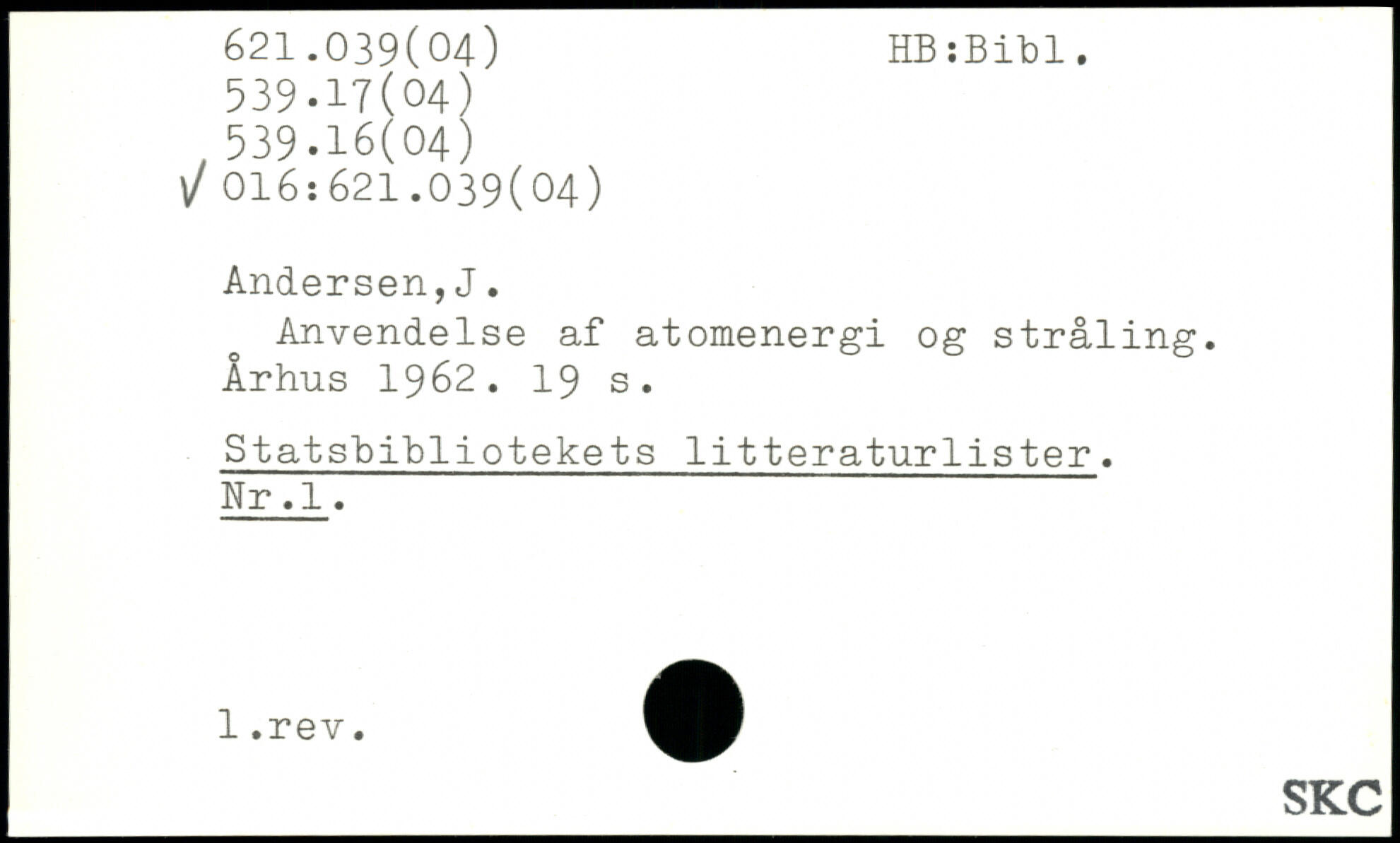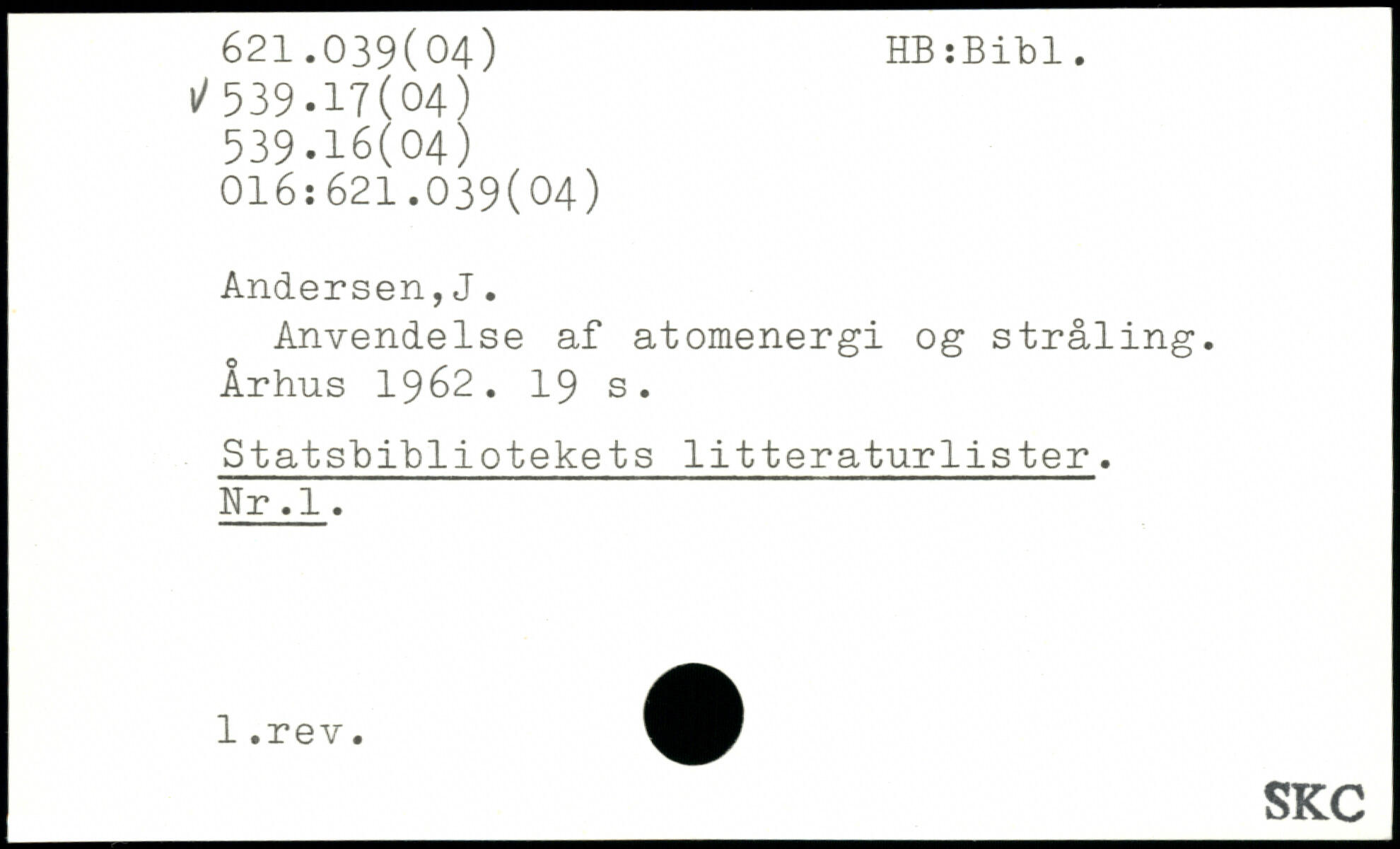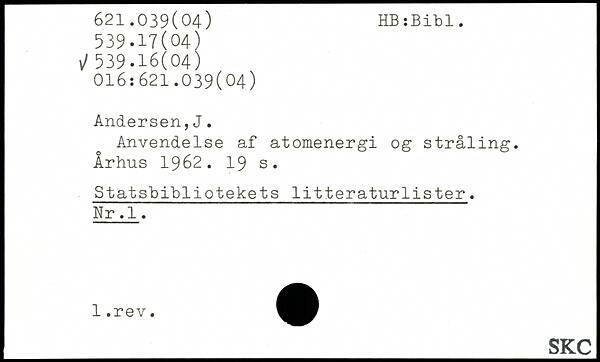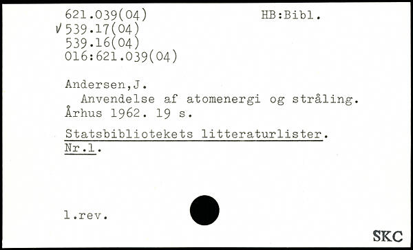 Anvendelse af atomenergi og stråling. Århus 1962.