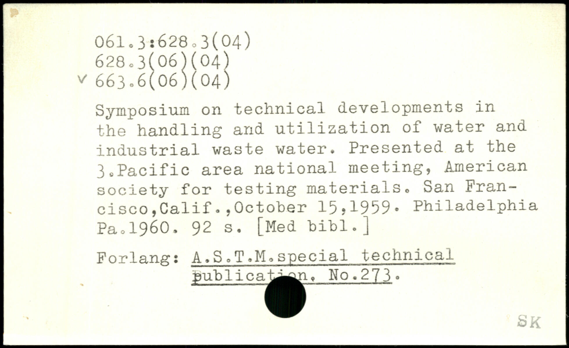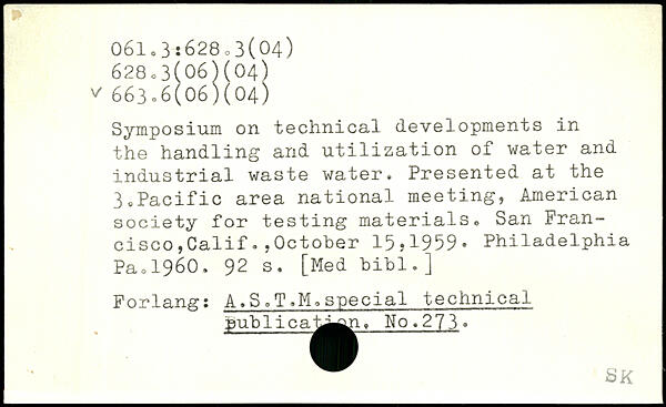 Symposium on technical developments in the handling and utilization of water and industrial waste water. Presented at the 3,Pacific area national meeting, American society for testing materials, San Francisco ,Calif.,October 15,1959. Philadelphia Pao1960.