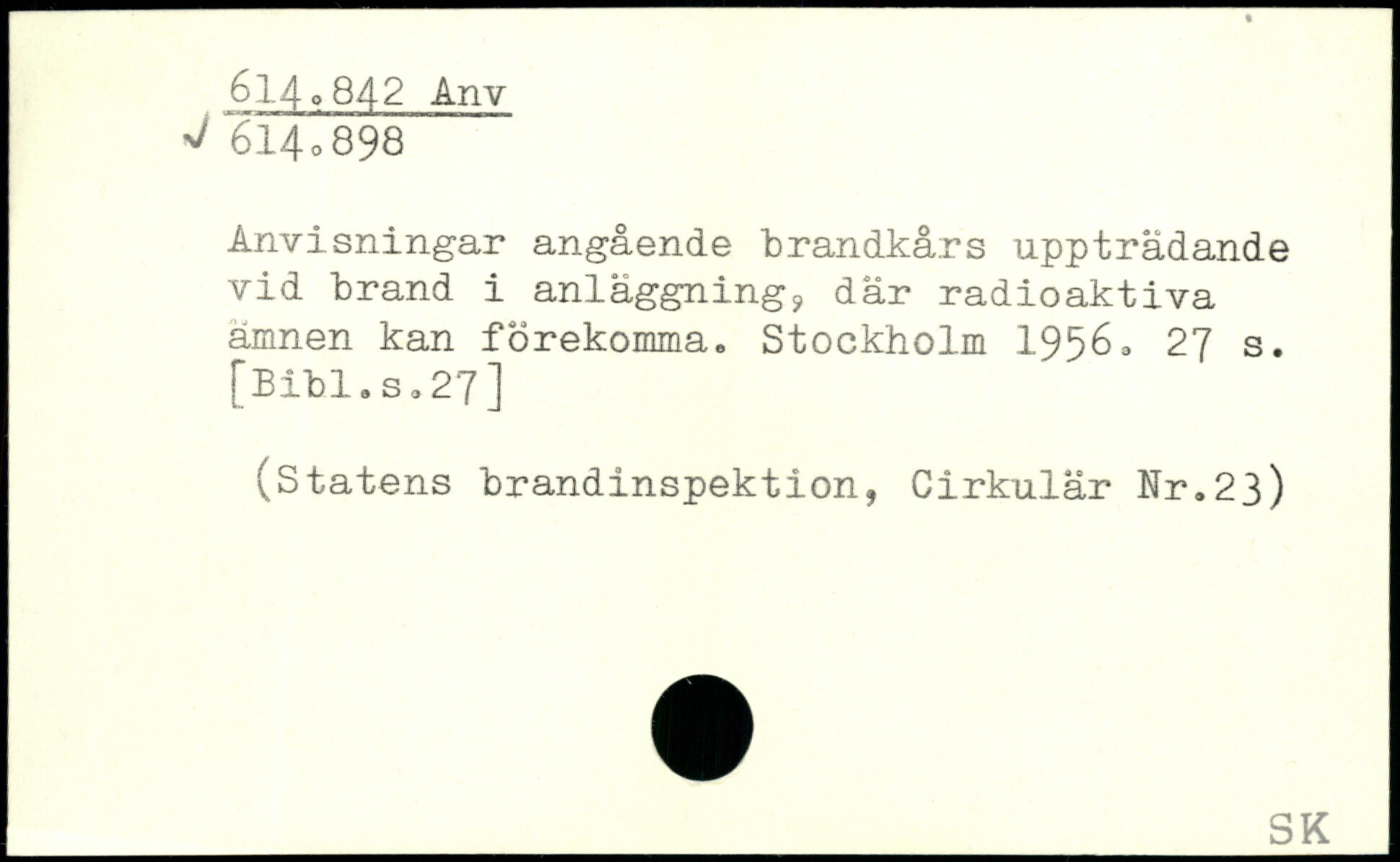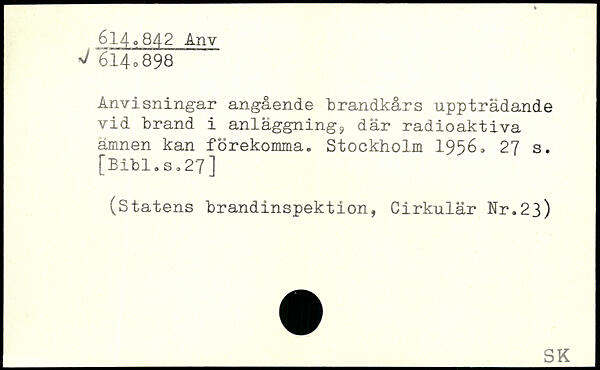 Anvisningar angående brandkårs uppträdande vid brand i anläggning^ där radioaktiva ämnen kan förekomma.