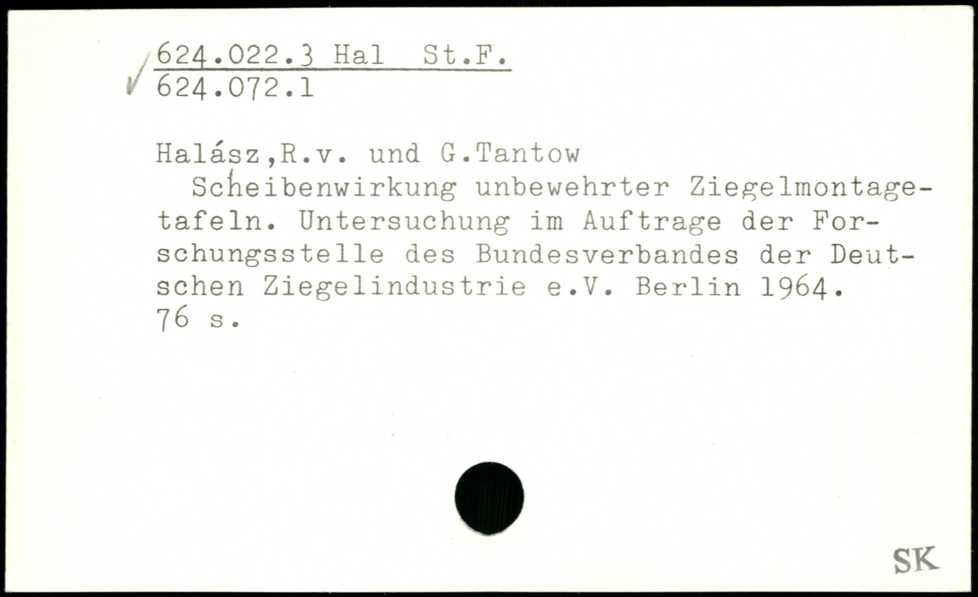 Sclieibenwirkung unbewehrter Ziegelmontage-tafeln. Untersuchung im Aufträge der Forschungsstelle des Bundesverbandes der Deutschen Ziegelindustrie e.V.
