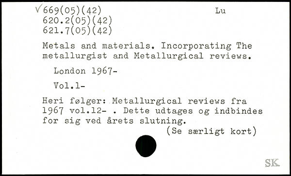 Metals and materials. Incorporating The metallurgist and Metallurgical reviews.