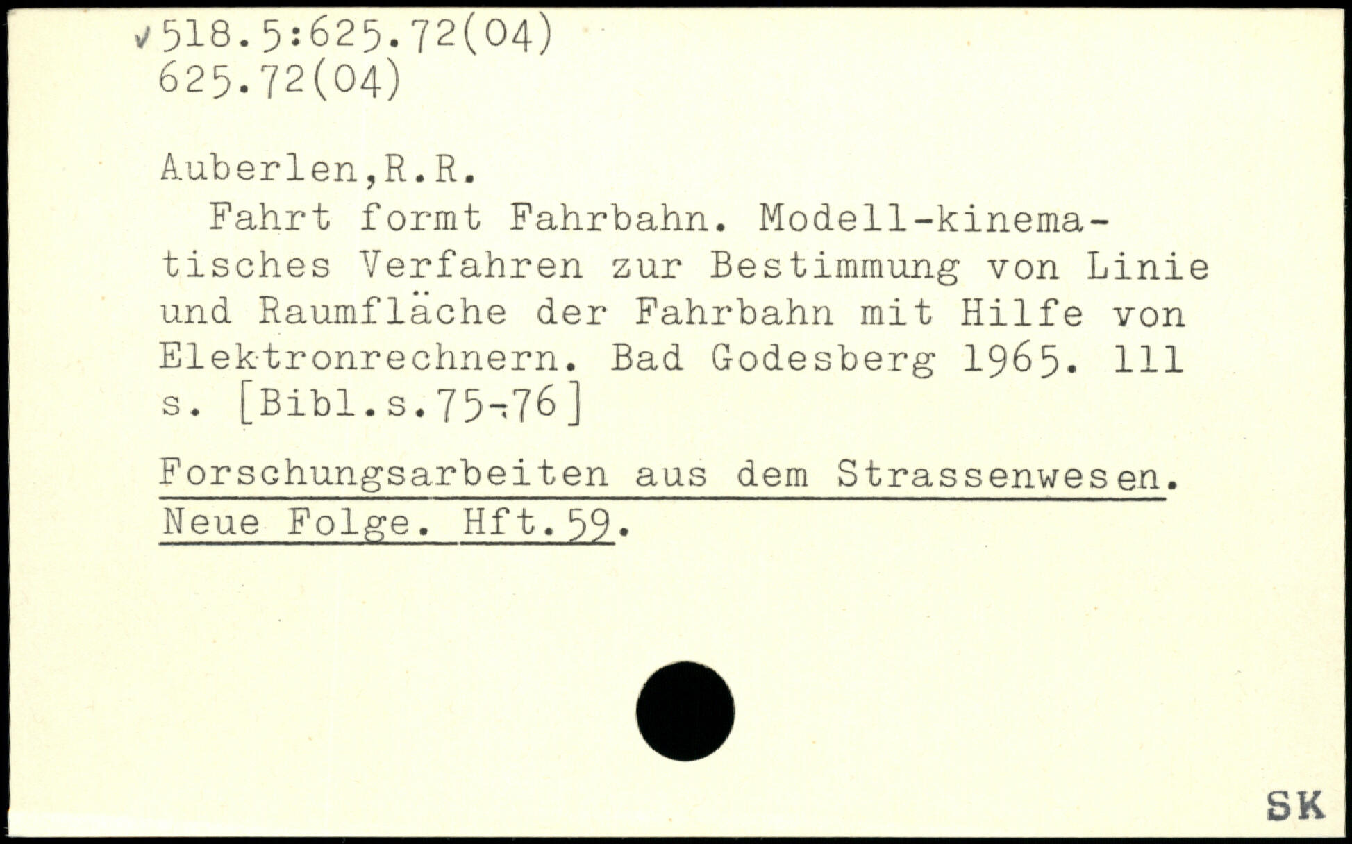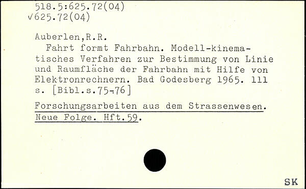 A.uberlen,R. R. Fahrt formt Fahrbahn. Modell-kinematisches Verfahren zur Bestimmung von Linie und Raumflache der Fahrbahn mit Hilfe von Elektronrechnern. Bad Godesberg 1965.