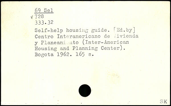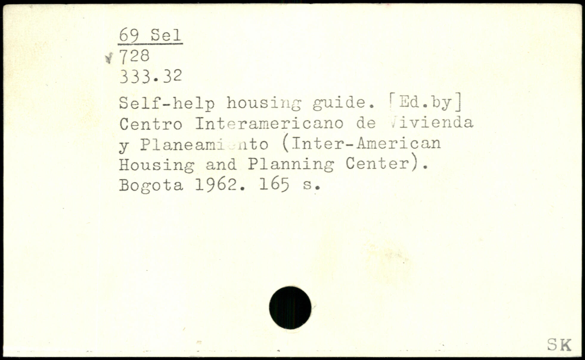 Self-help housing guide. rEd.by] Centro Interamericano de vivienda y Planeami nto (Inter-American Housing and Planning Center). Bogota 1962.